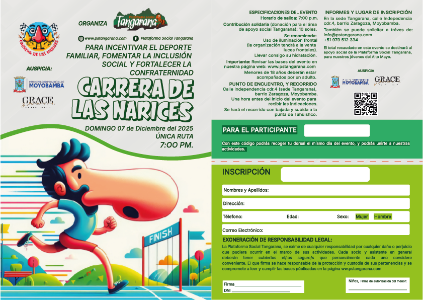 4.2. Las inscripciones se realizarán en el local de Tangarana; calle Independencia cdra. 4, Moyobamba.